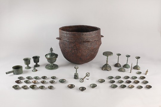ö¼Ü ¾È¿¡¼´Â Çâ·Î, Çâ¿Ï, Ãдë, Á¢½Ã, ±Ý°·É, ±Ý°Àú µî Á¤±³ÇÏ°Ô Á¦ÀÛµÈ ºÒ±³ ÀÇ·Ê µµ±¸°¡ ´ã°ÜÀÖ¾ú´Âµ¥, ÀÌó·³ ¿©·¯ Á¾·ùÀÇ À¯¹°µéÀÌ Àϰý ÃâÅäµÈ °ÍÀº °í·Á½Ã´ë ºÒ±³ÀÇ·Ê¿Í ½Å¾Ó¼¼°è¸¦ ÀÌÇØÇÒ ¼ö ÀÖ´Â µå¹® »ç·ÊÀÌ´Ù. ¶ÇÇÑ, ¼®È¸¿Í º¸¸®, º, Á¶, ±âÀå, ¹Ð, Äá µî ¾ÆÈ© Á¾ÀÇ °î¹°µµ ÇÔ²² È®ÀεǾú´Âµ¥, ÀÌ´Â ÇØ´ç À¯¹°µéÀÌ ´ç½Ã ´Ü¼øÇÑ ¸ÅÀåÀÌ ¾Æ´Ñ Ưº°ÇÑ ¸Å³³ ÇàÀ§¸¦ ÅëÇØ ¶¥¿¡ ¹¯ÇûÀ½À» º¸¿©ÁÖ´Â Áß¿äÇÑ ´Ü¼°¡ µÈ´Ù.