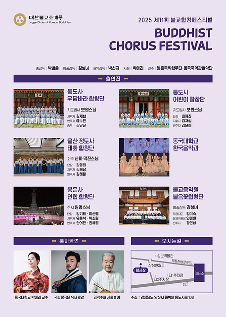 ¿À´Â 11¿ù 2ÀÏ(ÀÏ) ¿ÀÈÄ 4½Ã ¾ç»ê¿¡ À§Ä¡ÇÑ ¿µÃàÃѸ² Åëµµ»ç »ï¼º¹Ý¿ù±³ ¿· ¹«´ë¿¡¼ ¡®2025³â Á¦11ȸ ºÒ±³ÇÕâÆä½ºÆ¼¹ú¡¯ÀÌ °³ÃֵȴÙ. º» Çà»ç´Â ´ëÇѺұ³Á¶°èÁ¾ Ãѹ«¿øÀÌ ÁÖÃÖÇϰí Åëµµ»ç¿Í ´ëÇѺұ³Á¶°èÁ¾ ºÒ±³À½¾Ç¿øÀÌ °øµ¿ ÁÖ°üÇÑ´Ù.