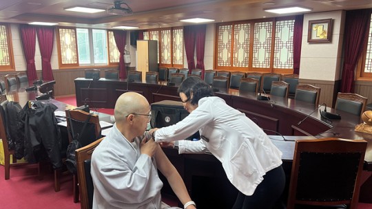 À̹ø Á¾¹«¿øÁ¶ÇÕ µ¶°¨¹é½Å Á¢Á¾Àº Á¾´Ü ±³¿ªÁ÷ ½º´Ôµé°ú Àç°¡ÀÚ Á÷¿øµéÀÇ ÀǷẹÁö¸¦ À§ÇØ ¾Æ¹ÌŸºÒ±³¿ä¾çº´¿øÀÇ ÀÇ·á º¸½Ã·Î ÁøÇàµÇ¾úÀ¸¸ç, ½º´Ô 15ºÐÀ» Æ÷ÇÔÇÏ¿© 155¸íÀÌ µ¶°¨¹é½ÅÀ» Á¢Á¾¹Þ¾Ò´Ù.
