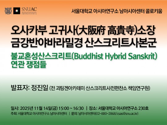 ¼¿ï´ë ³²¾Æ½Ã¾Æ¼¾ÅÍ¿¡¼´Â 11¿ù 14ÀÏ ¿ÀÈÄ 2½ÃºÎÅÍ 3½Ã±îÁö ¼¿ï´ëÇб³ ¾Æ½Ã¾Æ¿¬±¸¼Ò 304È£¿¡¼ »ê½ºÅ©¸®Æ® ±Ý°¹Ý¾ß¹Ù¶ó¹Ð´Ù°æ »çº»À» Åì¾Æº¸´Â ÄÝ·ÎÄû¾öÀ» ÁغñÇß´Ù.
