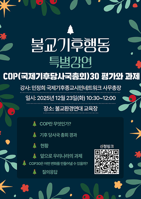 ºÒ±³±âÈÄÇൿ(»óÀÓ´ëÇ¥ ÀϹ® ½º´Ô)Àº ºÒ±â 2569(2025)³â 12¿ù 23ÀÏ(È)¿¡ ¿ÀÀü 10½Ã 30ºÐºÎÅÍ ¿ÀÈÄ 12½Ã±îÁö ºÒ±³È¯°æ¿¬´ë ±³À°Àå¿¡¼ ¿Ã ÇÑÇØ¸¦ µ¹¾Æº¸°í ¾ÕÀ¸·ÎÀÇ °¥ ±æÀ» ¸ð»öÇÏ´Â ¿öÅ©¼¥À» °³ÃÖÇÑ´Ù. ¿öÅ©¼¥ Ưº° °¿¬À¸·Î ¹ÎÁ¤Èñ ±¹Á¦±âÈÄÁ¾±³½Ã¹Î³×Æ®¿öÅ© »ç¹«ÃÑÀå Áö³ 11¿ù ºê¶óÁú¿¡¼ ¿¸° 30Â÷ ±âÈĺ¯ÈÇù¾à ´ç»ç±¹ ÃÑȸ(COP)¿¡ ´ëÇÑ Æò°¡¿Í ¿ì¸®³ª¶óÀÇ °úÁ¦¸¦ »ìÆìº¸´Â ½Ã°£À» °®´Â´Ù.