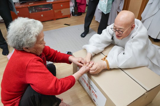 À̾î Áø¿ì ½º´ÔÀº ¡°¾à¼ÒÇÏÁö¸¸ ¸¶À½À» ´ã¾Ò´Ù. ´Ã °Ç°ÇÏ½Ã±æ ¹Ù¶õ´Ù.¡±´Â ªÁö¸¸ Áø½É ¾î¸° ¸»À» ÀüÇϸç, Á÷Á¢ ¿Â¼ö¸ÅÆ®¸¦ ¹Ù´Ú¿¡ ±ò¾ÆÁÖ°í 108¿°ÁÖ¸¦ ¼Õ¿¡ Áã¿©ÁÖ¾ú´Ù. ÇÒ¸Ó´Ï´Â ¡°ºÒÀڷμ ÀÌ·¸°Ô ½º´ÔÀÌ Á÷Á¢ ¿ÍÁÖ½Ã´Ï ³Ê¹« °¨°³¹«·®ÇÏ´Ù¡±¸ç ¿¬½Å °¨»çÇÔÀ» ÀüÇß´Ù.