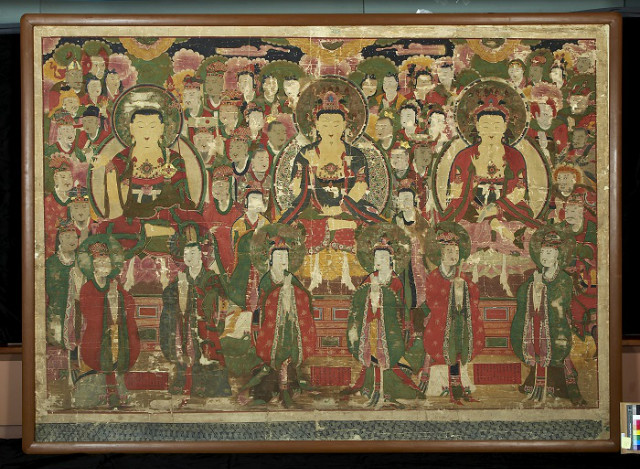 ¡®º¸¼º ´ë¿ø»ç ±Ø¶ôÀü °üÀ½º¸»ì․´Þ¸¶´ë»ç º®È(ÜÄàò ÓÞê«ÞÑ Ð¿Õ¥îü κëåÜÌß±․ӹؤÓÞÞÔ Ûúûþ, À§ »çÁø)¡¯´Â ´ë¿ø»ç¿¡ ¼ÒÀåµÈ 「ÜÄàòô¸ÜóߣÓÞê«ÞÑÓÞÛöÓÑä¨èÝîüæ¨ñëÖ÷ñì刱ÐàÓ¡ôìÌÂò¢íúËÇÑÑûþÊÀôÞÑÀÙþ」(´ë¿ø»ç Ƽº£Æ®¹Ú¹°°ü ¼ÒÀå)À̶ó´Â ÇöÆÇÀÇ ±â·ÏÀ¸·Î º¸¾Æ, 1766³âÀÇ ÁöÀ庸»ìµµ․½Ã¿Õµµ Á¶¼º°ú 1767³â ´ë¹ý´ç Áßâ ¶§ ±×·ÁÁø °ÍÀ¸·Î ÃßÁ¤µÇ´Â °ÍÀÌ´Ù. ÀÌ º®È´Â ºÒÀü ³»ºÎ µ¿․¼ º®¸é¿¡ °üÀ½º¸»ìµµ¿Í ´Þ¸¶µµ¸¦ ¹èÄ¡ÇÑ µ¶Æ¯ÇÑ »ç·ÊÀÌÀÚ, ¿î¹®»ç °üÀ½º¸»ì․´Þ¸¶´ë»ç º®ÈÀÇ °èº¸¸¦ ÀÕ´Â ÀÛǰÀÌ´Ù. ƯÈ÷, ÀÛǰÀÇ Æ¯Â¡ÀÌ 18¼¼±â Áß․ÈÄ¹Ý Å©°Ô Ȱ¾àÇß´ø ÀǰâÆÄ ÈdzÀ» º¸À̰í ÀÖ¾î ÁÖ¸ñµÈ´Ù.