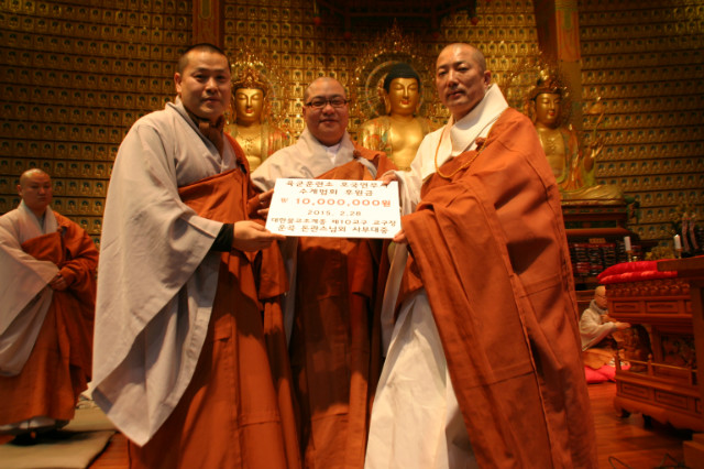 ÀºÇØ»ç ÁÖÁö µ·°ü ½º´Ô(»çÁø ¿À¸¥ÂÊ)ÀÌ 2¿ù 28ÀÏ À°±ºÈÆ·Ã¼Ò È£±¹¿¬¹«»ç¿¡¼ Áö¿î ¹ý»ç(»çÁø ¿ÞÂÊ)¿¡°Ô ÈÄ¿ø±Ý õ¸¸¿øÀ» Àü´ÞÇϰí ÀÖ´Ù.