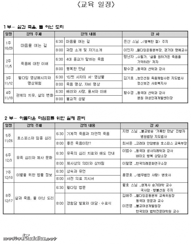 À̹ø °Á´ Á×À½¿¡ ´ëÇÑ ÀÌÇØ¸¦ ³ôÀÌ´Â 1ºÎ <»î°ú Á×À½, µÑ ¾Æ´Ñ µµ¸®>, È£½ºÇǽº¿Í À¯Á·½É¸®Ä¡·á, °ü·Ã ¹ý·ü Á¤º¸¸¦ ¾È³»ÇÏ´Â 2ºÎ <¾Æ¸§´Ù¿î ¸¶Ä§Ç¥¸¦ À§ÇÑ ½ÇÁ¦ Áغñ>ÀÇ µÎ °úÁ¤À¸·Î ³ª´©¾î ÁøÇàµÈ´Ù.