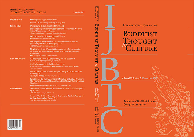 µ¿±¹´ëÇб³(ÃÑÀå À±¼ºÀÌ) ºÒ±³Çмú¿ø(¿øÀå Á¤½Â¼®)Àº Áö³ 2019³â 12¿ù 31ÀÏ International Journal of Buddhist Thought & Culture (ÀÌÇÏ IJBTC) Vol.29, No.2¸¦ »õ·Ó°Ô ¹ßÇàÇß´Ù.