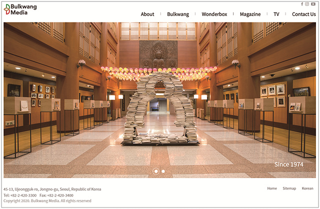 ±Û·Î¹ú»çÀÌÆ®´Â ¡ãBulkwang(ºÒ±¤ÃâÆÇ»ç) ¡ãWonderbox(¿ø´õ¹Ú½º) ¡ãMagazine(¿ù°£ ¡¸ºÒ±¤¡¹) ¡ãTV(¿µ»ó) µî Å©°Ô 4°³ Ä«Å×°í¸®·Î ±¸¼ºµÆ´Ù. »çÀÌÆ®¿¡¼´Â Çѱ¹ºÒ±³ÀÇ ÀüÅë°ú Çö´ë¸¦ ¾Æ¿ì¸£´Â Çмú¡¤´ëÁß¼¸¦ ÃâÆÇÇØ¿Â ºÒ±¤ÃâÆÇ»çÀÇ ±¹¡¤¿µ¹® ´ÜÇົ, »õ·Î¿î °üÁ¡À¸·Î Çѱ¹»çȸÀÇ ½Ã´ëÀû È帧°ú Áö½ÄÀ» ޱ¸Çؿ µµ¼ÃâÆÇ ¿ø´õ¹Ú½ºÀÇ µµ¼ ¸ñ·ÏÀ» ÇÑ´«¿¡ ¿¶÷ÇÒ ¼ö ÀÖ´Ù. ¶Ç ºÒ±³ÀÇ Çö´ëÈ¡¤´ëÁßÈ¡¤»ýȰȸ¦ À§ÇØ 46³â°£ ÇÑ È£µµ °Å¸£Áö ¾Ê°í ¹ß°£ÇÑ ¿ù°£ ¡¸ºÒ±¤¡¹ ÃֽŠȣ ¸ñ·Ïµµ ÇÔ²² »ìÆìº¼ ¼ö ÀÖ´Ù. ƯÈ÷ ºÒ±¤¹Ìµð¾î À¯Æ©ºê ä³Îµµ ¿¬µ¿µÆ´Ù. Çѱ¹ÀÇ ¼±Áö½ÄÀ» ¸ð½Ã°í ÆîÃÄÁö´Â ÁöÇýÀÇ ÄÁÆÛ·±½º ¡®º×´Ù ºò Äù½ºÃµ¡¯ °¿¬ ¿µ»ó, ¸í»ç ÀÎÅͺä, °æÀü °ÀÇ, ¿µ»ó ¹ý¹®, »çÂû dz°æ µî dzºÎÇÏ°í ´Ùä·Î¿î ¿µ»ó ÄÜÅÙÃ÷µµ Æí¸®ÇÏ°Ô ½ÃûÇÒ ¼ö ÀÖ´Ù.