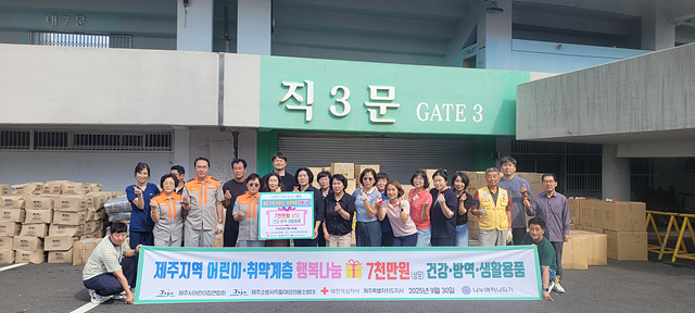 ¹°Ç°À» ÈÄ¿ø¹ÞÀº Á¤¹ÎÈñ ´ëÇÑÀû½ÊÀÚ»ç Á¦ÁÖµµÁö»ç »ç¹«Ã³ÀåÀº ¡°µµ³»¿¡ º¹Áö »ç°¢Áö´ë°¡ ¹ß»ýÇÏÁö ¾Êµµ·Ï ³ë·ÂÇϰí, ÈÄ¿ø¹ÞÀº ¹°Ç°À» Ãë¾à°èÃþ¿¡°Ô Àß Àü´ÞÇϰڴÙ.¡±¸é¼ ¡°Àç³±¸È£¿Í °ø°øÀÇ·á µî ´Ù¾çÇÑ »ç¾÷À» ¹ÙÅÁÀ¸·Î ±¹¹ÎÀÇ »ý¸í°ú ¾ÈÀüÀ» ÁöŰ´Â »çȸ ºÀ»ç±â°üÀ¸·Î¼ ´õ¿í Ȱ¹ßÇÑ È°µ¿À» ÆîÄ¡°Ú´Ù.¡±°í ¸»Çß´Ù.