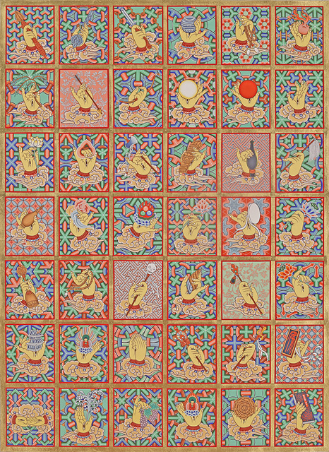 È«°ü½ÄÀÇ ¡´°ü¼¼À½º¸»ì 42¼ö¡µ´Â ´ÜûÀÇ Á¶ÇüÀ» ¹ÙÅÁÀ¸·Î ÆË¾ÆÆ®Àû »ö°¨°ú ¹Ýº¹Àû ÆÐÅÏÀ» °áÇÕÇØ ¹«°Å¿î Á¾±³Àû ÁÖÁ¦¸¦ ÀÏ»óÀûÀÌ°í °æÄèÇÑ À̹ÌÁö·Î Å»¹Ù²Þ½ÃÄ×´Ù.