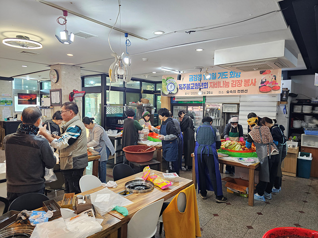 Á¦ÁÖºÒ±³Ã»³âȸ(ȸÀå ±èº¸¼º)´Â Áö³ 12¿ù 25ÀÏ ±Ý°°æ 100ÀÏ ±âµµ ȸÇâÀ¸·Î ¾î·Á¿î ÀÌ¿ôµéÀ» À§ÇÑ ÀÚºñ³ª´® ±èÀåºÀ»ç¿Í Àü±¹ ¼±¿ø°ú °¿ø¿¡ °¨±Öº¸³»±â »ç¾÷À» ÁøÇàÇß´Ù.
