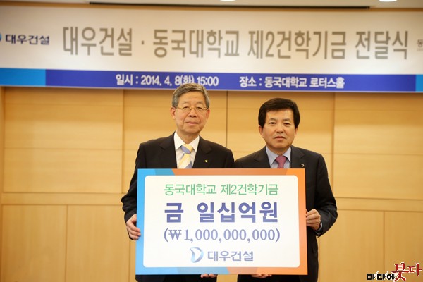 ¹Ú¿µ½Ä ´ë¿ì°Ç¼³ ´ëÇ¥À̻簡 ±èÈñ¿Á µ¿±¹´ë ÃÑÀå¿¡°Ô µ¿±¹´ë Á¦2°ÇÇбâ±Ý 10¾ï ¿øÀ» Àü´ÞÇϰí ÀÖ´Ù.