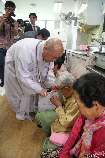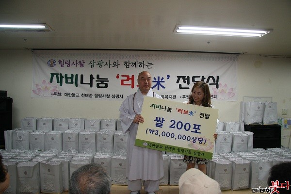 ´ëÇѺұ³ õÅÂÁ¾ Èú¸µ»çÂû »ï±¤»ç(ÁÖÁö ¹«¿ø ½º´Ô)´Â Áö¿ª ³» Àú¼Òµæ µ¶°Å³ëÀÎÀ» ´ë»óÀ¸·Î ÀÚºñÀÇ ½ÒÀ» Àü´ÞÇß´Ù. »ï±¤»çû³âȸ°¡ ÁÖ°üÀÌ µÇ¾î Áö³ 5¿ù 19ÀÏ ¿ÀÀü 11½Ã »çÇϱ¸¿¡ À§Ä¡ÇÑ ±¸Æòº¹Áö°ü 2Ãþ °´ç¿¡¼ Ä¡·¯Áø À̹ø Àü´Þ½Ä¿¡´Â ÁÖÁö ¹«¿ø ½º´Ô, »ï±¤»ç û³âȸ ȸ¿ø ¹× Áö¿ª ³» ¾î¸£½Å 200¿© ¸íÀÌ Âü¼®Çß´Ù.