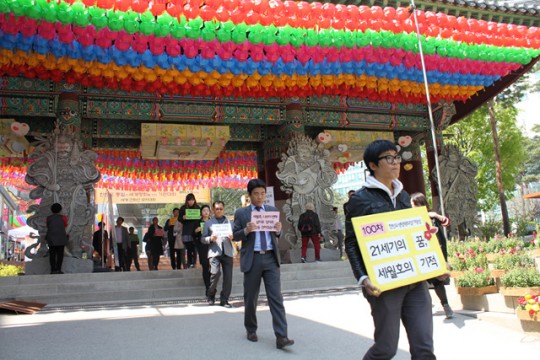 ºÒ±³°è ½Ã¹Î»çȸ´ÜüµéÀÌ ±¸¼ºÇÑ ¿¬´ë±â±¸ ºÒ±³½Ã¹Î»çȸ³×Æ®¿öÅ©´Â 4¿ù 21ÀÏ ³· 12½Ã ¼¿ï Á¶°è»ç ³» »ý¸íÆòȹý´ç ¾Õ¿¡¼ 100Â÷ Çѹݵµ »ý¸íÆòÈ ±â¿ø °È±â¸í»óÀ» ½Ç½ÃÇß´Ù.<»çÁø>