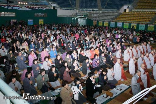 Æ÷Ç×Áö¿ª 3õ¿© ¸íÀÇ ½º´Ô°ú Àç°¡ºÒÀÚµéÀÌ ÇÑ ÀÚ¸®¿¡ ¸ð¿© 108¹è Á¤ÁøÀ¸·Î »çȸ¿Í Á¾±³ÈÇÕÀ» ±â¿øÇÏ´Â ´ë¹ýȸ°¡ ¿¸°´Ù.