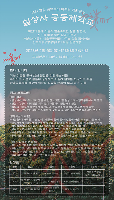 ½Ç»ó»ç°øµ¿Ã¼ÀÇ °æÇè°ú ¸¶À»°øµ¿Ã¼¸¦ ¹è¿ì´Â 3¹Ú4ÀÏ Ä·ÇÁ·Î