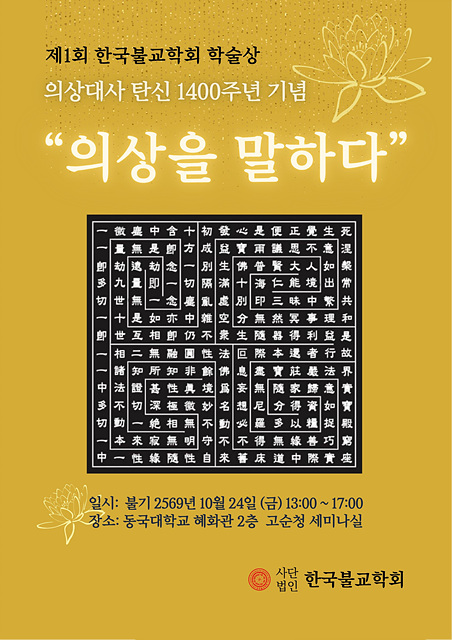 bind1206@naver.com 2025-10-20 (¿ù) 08:59(»ç)Çѱ¹ºÒ±³ÇÐȸ(ȸÀå ¿°Áß¼·(ÀÚÇö½º´Ô))´Â ¿À´Â ºÒ±â 2569(2025)³â 10¿ù 24ÀÏ (±Ý) ¿ÀÈÄ 1½ÃºÎÅÍ 5½Ã±îÁö µ¿±¹´ëÇб³ ÇýȰü 218È£ °í¼øÃ»¼¼¹Ì³ª½Ç¿¡¼ ¡®2025³â Çѱ¹ºÒ±³ÇÐȸ Ãß°èÇмú´ëȸ¡¯¸¦ °³ÃÖÇÑ´Ù.