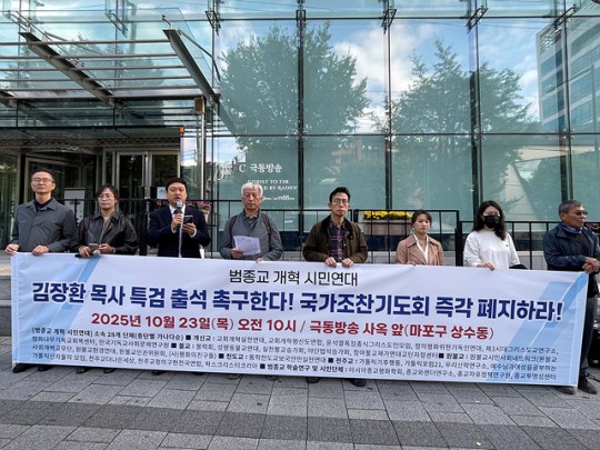 ¹üÁ¾±³°³Çõ½Ã¹Î¿¬´ë(ÀÌÇÏ ¿¬´ë)´Â ¿À´Ã(23ÀÏ) ¿ÀÀü 10½Ã ±Øµ¿¹æ¼Û»ç¿Á ¾Õ¿¡¼ ¡®±èÀåȯ ¸ñ»çÀÇ Ã¤»óº´ Ư°Ë Ãâ¼® Ã˱¸ ¹× ±¹°¡Á¶Âù±âµµÈ¸ ÆóÁö¡¯¸¦ ¿ä±¸ÇÏ´Â ±âÀÚȸ°ßÀ» °³ÃÖÇß´Ù. ¿¬´ë´Â °³½Å±³, ºÒ±³, ¿øºÒ±³, õµµ±³, õÁÖ±³¸¦ ºñ·ÔÇÑ 28°³ Á¾±³ ¹× ½Ã¹Î´Üüµé·Î ±¸¼ºµÇ¾úÀ¸¸ç, ´ëÇѹα¹ Çå¹ý¿¡ ¸í½ÃµÈ Á¤±³ºÐ¸® ¿øÄ¢ÀÇ ¼öÈ£¿Í ÈÑ¼ÕµÈ Çå¹ýÀû Áú¼ È®¸³À» À§ÇÑ ±¸Ã¼ÀûÀÎ ÇൿÀ» °·ÂÈ÷ Ã˱¸Çß´Ù. ±âÀÚȸ°ßÀÇ ÁøÇàÀº ±³È¸°³Çõ½Çõ¿¬´ëÀÇ ±â¼÷¿µ »ç¹«±¹ÀåÀÌ ¸Ã¾Ò´Ù.