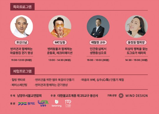 ¿ÃÇØ·Î 2ȸ°¸¦ ¸ÂÀÌÇÏ´Â ¡®¹Ý·Á°ß°ú ÇÔ²²ÇÏ´Â ¼±¸í»ó ÃàÁ¦¡¯´Â ´ëÇѺұ³Á¶°èÁ¾(Ãѹ«¿øÀå Áø¿ì ½º´Ô)ÀÌ ÁßÁ¡ ÃßÁøÇϰí ÀÖ´Â ¡®±¹¹Î Çູ(Ä¡À¯) ÇÁ·ÎÁ§Æ®¡¯ÀÎ ¡®¼±¸í»ó¡¯°ú ¿¬°è, ¹Ý·ÁÀΰú ¹Ý·Á°ßÀÌ ÇÔ²² ¸í»ó¡¤¿ä°¡¡¤°¿¬¡¤Ã¼Çè µî¿¡ Âü¿©ÇÒ ¼ö ÀÖ´Â º¹ÇÕ Èú¸µ Æä½ºÆ¼¹úÀÌ´Ù. Áö³ÇØ ¿¸° ù Çà»ç ´ç½Ã, 1õ 5¹é¿© ¸íÀÇ ¹Ý·ÁÀΰú ½Ã¹ÎµéÀÌ Âü¿©ÇÏ¸ç ³ôÀº È£ÀÀÀ» À̲ø¾î³Â´Ù.