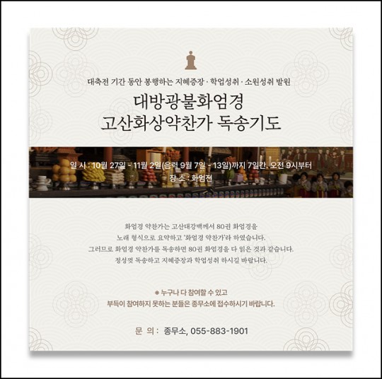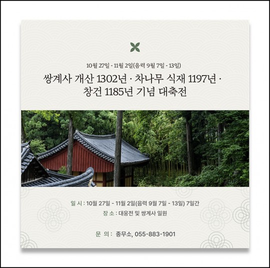 ½Ö°è»ç°¡ °³»ê 1302³â ¡¤ Â÷³ª¹«½ÄÀç 1197³â ¡¤ â°Ç 1185³âÀ» ±â³äÇÏ´Â ´ëÃàÀü Çà»ç¸¦ ºÒ±â 2569(2025)³â 10¿ù 27ÀϺÎÅÍ 11¿ù2ÀÏ(À½·Â9¿ù7ÀÏ~13ÀÏ)±îÁö 7ÀÏ µ¿¾È ´ë¿õÀü ¹× ½Ö°è»ç ÀÏ¿ø¿¡¼ ºÀÇàÇÑ´Ù.