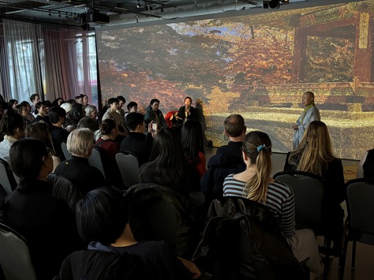 11¿ù 1ÀÏ, ÁÖ¿µÇѱ¹¹®È¿ø(KCCUK)¿¡¼ ¿¸° Á¤°ü ½º´ÔÀÇ ¡®À½½Ä¸í»ó(Food Meditation)¡¯ Àº Çѱ¹ÀÇ Á¤¿ø ¹Ìµð¾î Àü½Ã¸¦ ¹è°æÀ¸·Î ÇÏ¿© Âü°¡ÀÚµéÀº »çÂû·Î À̵¿ÇÑ µíÇÑ ÆòÈ¿Í ±àÁ¤ÀÇ ¿¡³ÊÁö¸¦ ³ª´ ¼ö ÀÖ¾ú´Ù.