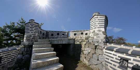 Àü½Ã´Â ¿¬ÁÖºÀ ¿Ë¼º°ú Á¦5¾Ï¹®À» ÁÖÁ¦·Î, ³²Çѻ꼺ÀÇ ÇÙ½É ¹æ¾î½Ã¼³À» »õ·Î¿î ½Ã°¢À¸·Î ´ã¾Æ³½ ÀÛǰµé·Î ±¸¼ºµÈ´Ù. Áø ±³¼ö´Â ±ú²ýÇÏ°Ô º¹¿øµÈ ¿Ë¼ºÀÇ ¿ÜºÎ¿Í ³»ºÎ, ±×°÷¿¡¼ ¹Ù¶óº» ¼º°û°ú ½Ã³» Àü°æÀ» »çÁøÀÇ ¾ð¾î·Î ±â·ÏÇÏ¿´´Ù. ƯÈ÷ ¿Ë¼ºÀÇ °î¼±°ú ¸¼Àº ÇÏ´ÃÀÌ ¸¸µé¾î³»´Â ´ëºñ´Â ³²ÇѼºÀÌ Áö´Ñ Á¶ÇüÀû ¾Æ¸§´Ù¿ò°ú ½Ã°£ÀÇ ±íÀ̸¦ º¸¿©ÁØ´Ù.