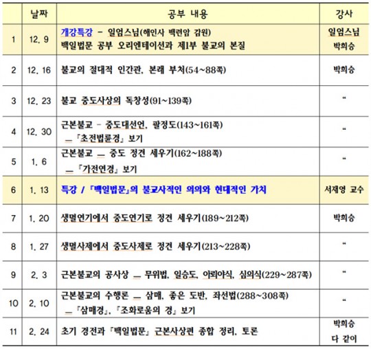 ±×µ¿¾È µ¿¾È°Å ¼ºÃ¶ ½º´Ô ¹éÀϹý¹® °øºÎ´Â ºÒ±³ÀÎÀç¿ø¿¡¼´Â ÁøÇàÇßµ¥, ÀÌÁ¦ºÎÅÍ´Â ±× ÀüÅëÀ» °è½ÂÇÏ¿© »ýȰ¼±¸í»ó¼¾ÅÍ¿¡¼ ¿Â¶óÀÎÀ¸·Î ÁøÇàÇÑ´Ù. 12¿ù 9ÀÏ Àú³á 7½Ã 30ºÐ¿¡ ½ÃÀÛÇÏ´Â °³° Ư°Àº ÇØÀÎ»ç ¹é·Ã¾Ï °¨¿ø ÀϾö ½º´ÔÀÌ Çϸç, ¼ºÃ¶»ç»ó¿¬±¸¿ø ¼À翵 ¿øÀåÀÇ Æ¯°µµ ÀÖ´Ù. Àüü °øºÎ´Â Çѱ¹¸í»óÁöµµÀÚÇùȸ ¹ÚÈñ½Â »ç¹«ÃÑÀåÀÌ ÁøÇàÇÑ´Ù.