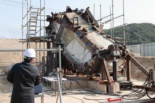 ¾çÁß ½ÃÇèÀº ÃÑÁß·® 110Åæ°¡·® µÇ´Â ¿¾Ï°î ¸¶¾ÖºÒ»ó ½Ç´ëÇü ¸ðÇüÀ» À¯¾Ð±â±â¸¦ ÀÌ¿ëÇÏ¿© µé¾î ¿Ã¸®´Â ½ÃÇèÀ¸·Î ´çÀÏ ½ÃÇèÀ» ÅëÇØ ¾à 30cm °¡·® ¾ÈÀüÇÏ°Ô ¾çÁß¿¡ ¼º°øÇß´Ù.