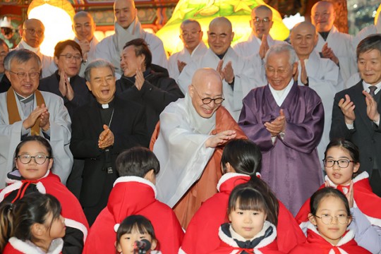 Ãѹ«¿øÀ彺´ÔÀº ¡°¾îµÎ¿î ¼¼»óÀ» ºñÃß±â À§ÇØ ¿À½Å ¾Æ±â ¿¹¼ö´Ô ź»ýÀ» ÃàÇÏÇϸç Á¾±³°£ ÈÇÕÀº °¥µîÀ» ÁÙÀÌ°í Æòȸ¦ ¼¼¿ì´Â »çȸÀû ÈûÀ̸ç Á¾±³°è°¡ ¿¬´ëÇÏ¿© »çȸÀû ¾àÀÚµéÀÇ °çÀ» ÁöŰ°í °íÅëÀÇ ÇöÀå °¡±îÀÌ ´Ù°¡°¡¾ß ÇÑ´Ù¡± ¶ó´Â ÃàÇϸ޽ÃÁö¸¦ ¹ßÇ¥Çß´Ù.