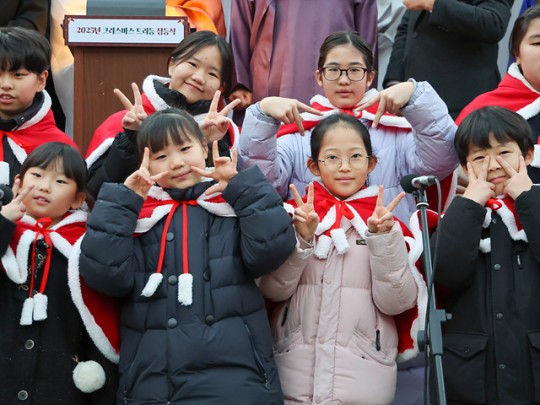 Çà»ç´Â Ãѹ«¿øÀ彺´ÔÀÇ ¡®Å©¸®½º¸¶½º ÃàÇϸ޽ÃÁö¡¯ ¹ßÇ¥, ÀÌ¿ôÁ¾±³ ÁöµµÀÚ Àλ縻¾¸, Æ®¸®µî Á¡µî, Á¶°è»ç ¼Ò³â¼Ò³àÇÕâ´ÜÀÇ °ø¿¬ ¼ø¼·Î ÁøÇàµÆ´Ù.