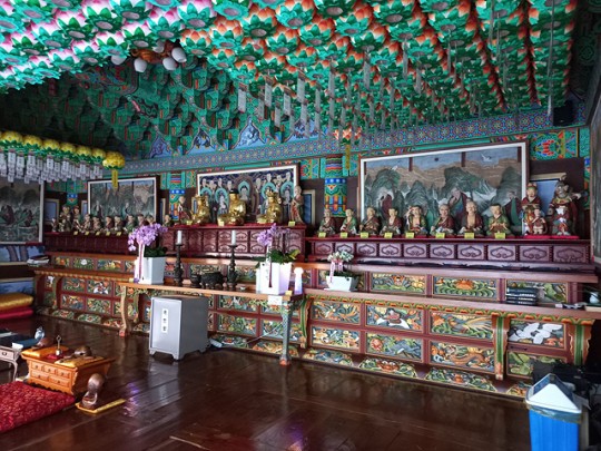 ¼ö¹Ì´Ü À§ Áß¾Ó¿¡ ³õÀÎ ¾È»ó(äÑßÚ)ÀÌ Àå½ÄµÈ 2Ãþ ºÒ´Ü¿¡´Â »ï¼¼ºÒ»óÀ», 1Ãþ ºÒ´Ü¿¡´Â Á¿ìÃø °¢°¢¿¡ 8À§ÀÇ ¾Æ¶óÇÑ Á»óÀ» ºÀ¾ÈÇÏ¿´½À´Ï´Ù.