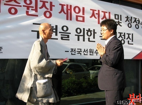 30ÀÏ Á¾·Î ¿ìÁ¤Ãѱ¹¿¡¼ ¼öÁÂȸ ¹¬¾ðÁ¤Áø¿¡ µ¿ÂüÇÏ´Â Àç°¡ºÒÀÚµéÀÌ Á¶°èÁ¾ Ãѹ«¿ø û»ç¸¦ ÇâÇØ 108¹è¸¦ Çϰí ÀÖ´Ù. ±èÁ¾±Ô ±³´ÜÀÚÁ¤¼¾ÅÍ ¿øÀåÀº "Æø·Â ÇàÀ§°¡ ÀϾ´ø Àå¼ÒÀÎ À̰÷ ¿ìÁ¤Ã»±¹¿¡¼ ÂüȸÀÇ ¸¶À½À» ´ã¾Æ 108¹è¸¦ ½ÃÀÛÇÑ´Ù"°í ¹àÇû´Ù.