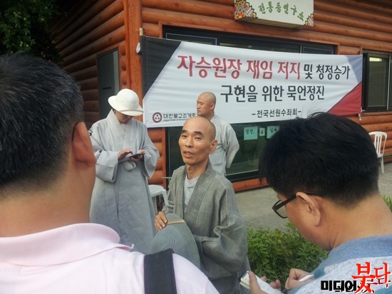 ¼±¿ø¼öÁ´ëÃ¥À§ ´ëº¯ÀÎ ¼±¹ý½º´ÔÀÌ ±âÀڵ鿡°Ô ȸÀÇ °á°ú¸¦ ¼³¸íÇϰí ÀÖ´Ù. ¼±¹ý½º´ÔÀº 9¿ù 2ÀÏ ºÒ±³±¤Àå¿¡¼ Àڽ ¿øÀåÀÇ Èĺ¸Ãß´ë°¡ ÀÖÀ» °æ¿ì, Àü±¹ÀÇ ¼öÁµéÀÌ ÃÑ ±È±â ÇÒ °ÍÀ̶ó°í ¹àÇû´Ù.