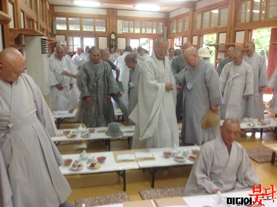 ºÒ±³±¤Àå ÀÓ½ÃÃÑȸ¿¡ Âü¼®Çϱâ À§ÇØ µ¿È»ç¿¡ ¸ðÀÎ ½º´ÔµéÀÌ ÃÑȸÀåÀ¸·Î µé¾î¼¸ç Àλ縦 ³ª´©°í ÀÖ´Ù.