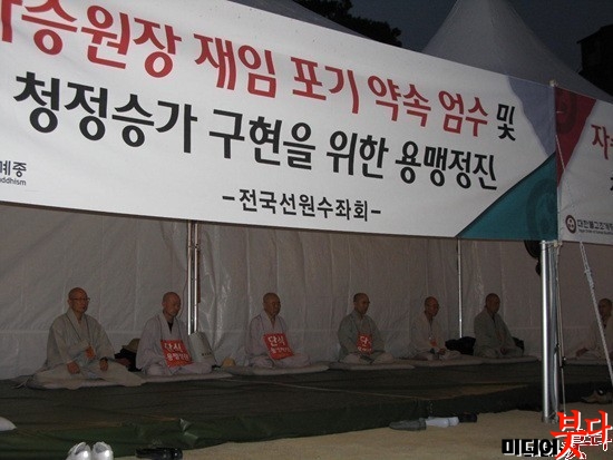 ¿ë¸ÍÁ¤Áø ½ÃÀÛ¿¡´Â 12¸íÀÇ ¼öÁ°¡ µ¿ÂüÇß´Ù. ÀÌ Áß ¼ö¿ø, û¾Ï, µµÇà ½º´Ô µî ¼¼ ¸íÀº ´Ü½ÄÁ¤ÁøÀ», ±×¹Û¿¡ ½º´ÔµéÀº ¹¬¾ðÁ¤ÁøÀ» ÇÏ°Ô µÈ´Ù.