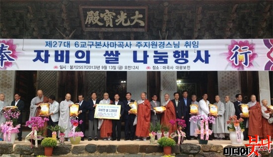 Á¶°èÁ¾ Á¦6±³±¸º»»ç ¸¶°î»ç »õ ÁÖÁö ¿ø°æ ½º´ÔÀÇ ±³±¸Àå Áø»ê½ÄÀº ¾ï¼ö °°Àº °¡À»ºñ°¡ ³»¸®´Â °¡¿îµ¥ ÁøÇàµÆ´Ù. 9¿ù 13ÀÏ ¿ÀÀü 12½Ã ¸¶°î»ç¿¡´Â 200¿© ¸íÀÇ ½º´Ôµé°ú ¸¶°î»ç ±³±¸ÀÇ °ü³» ±â°üÀåµé, û½Å»ç û½Å³à µî »çºÎ´ëÁß 300¿© ¸íÀÌ ¿îÁýÇß´Ù. °¡À»À» ÀçÃËÇÏ´Â ºñ°¡ ³»¸®´Â °¡¿îµ¥ ¿¸° ¸¶°î»ç ÁÖÁö Áø»ê½ÄÀº ÈçÈ÷ º¸¾Æ¿Â Áø»ê½ÄÀÌ ¾Æ´Ñ ÀÇ¹Ì ÀÖ°í ¾Æ¸§´Ù¿î Çà»ç·Î ÁøÇàµÆ´Ù.
