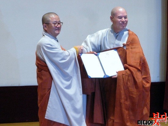 Á¶°èÁ¾ Áß¾Ó¼±°üÀ§¿øÀå ¹ü¿© ½º´ÔÀº Á¦34´ë Á¶°èÁ¾ Ãѹ«¿øÀå ´ç¼±ÀÚ Àڽ ½º´Ô¿¡°Ô ´ç¼±ÁõÀ» Àü´ÞÇß´Ù.