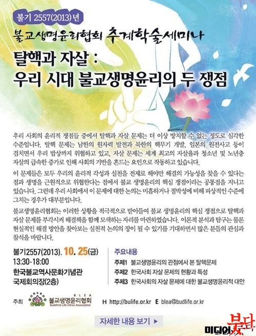ºÒ±³»ý¸íÀ±¸®Çùȸ(°øµ¿´ëÇ¥ ¹ýÀÀ½º´Ô¡¤¹Ú±¤¼)´Â ¿ÃÇØÀÇ Ãß°èÇмú¼¼¹Ì³ª¸¦ ¡®Å»ÇÙ°ú ÀÚ»ì- ¿ì¸® ½Ã´ë ºÒ±³»ý¸íÀ±¸®ÀÇ µÎ ÀïÁ¡¡¯À» ÁÖÁ¦·Î ¿À´Â 10¿ù 25ÀÏ(±Ý) ¿ÀÈÄ 1½Ã 30ºÐºÎÅÍ 6½Ã±îÁö Çѱ¹ºÒ±³¿ª»ç¹®È±â³ä°ü ±¹Á¦È¸ÀÇÀå(2Ãþ)¿¡¼ °³ÃÖÇÑ´Ù.