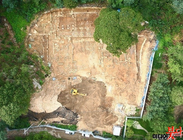 ¹ß±¼Á¶»ç °úÁ¤¿¡¼ µµºÀ¼¿ø ÅÍ Áß½ÉÀ» ÀÌ·ç´Â Á¦5È£ °Ç¹°ÅÍ(µ¿¼ 12.63m, ³²ºÏ 12.74m)°¡ ¿ø·¡´Â ¿µ±¹»ç¶ó´Â »çÂûÀÇ Á᫐ °ÇÃ๰ÀÎ ±Ý´ç ȤÀº ´ë¿õÀüÀ» ±×´ë·Î Ȱ¿ëÇÑ »ç½ÇÀÌ µå·¯³µ´Ù. ÀϺΠ°Ç¹° ¶Ç´Â ±â´ÜÀ» ÀçȰ¿ëÇÏ¿´°í, ¼®Ãà°ú ¼Óµµ¶û¹è¼ö½Ã¼³ À§¿¡ Á¶¼± ½Ã´ë °Ç¹°À» ÃàÁ¶ÇÑ ÈçÀûµµ È®ÀεƴÙ.