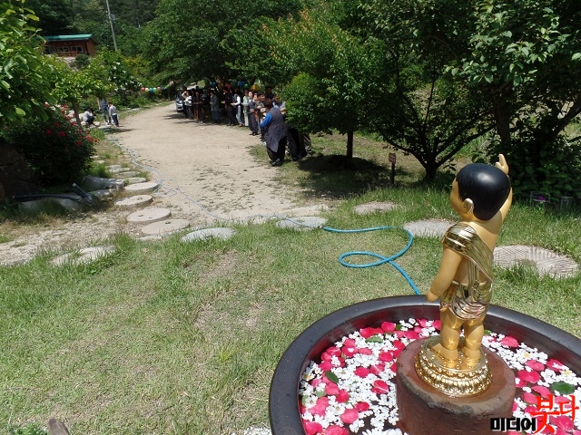 °ø¾çÀ» ¹ÞÀº ½º´ÔµéÀÌ °ø¾çÀå¼ÒÀÎ Æ÷»ì´ç(½Ã¸¶È¦)·Î µé¾î¼±â Àü Àç°¡ÀÚµéÀÌ ½º´ÔµéÀÇ ¹ßÀ» ¾Ä¾îµå¸®°í ÀÖ´Ù.