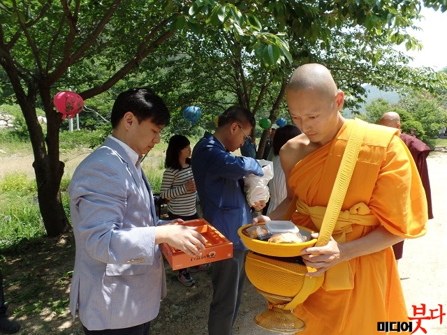 Çѱ¹Å×¶ó¿Í´Ù ºÒÀÚµéÀº ¿ÀÀü¿¡ µî ´Þ±â¿Í °ü¿å(ºÎó´ÔÀ» ¸ñ¿å½ÃŰ´Â ÀǽÄ) ÀǽÄÀ» ÁøÇàÇÑ ÈÄ, ¾ß¿Ü¿¡ ¸ð¼Å³õÀº ºÒ»ó¿¡ Àü ½º´Ô°ú ºÒÀÚµéÀÌ ÇÔ²² ¸ð¿© Âü¹è¿Í ÃкÒ, ²É, ûÁ¤¼ö¸¦ °ø¾ç ¿Ã¸®°í ³ ÈÄ ¹ý´çÀ¸·Î ´Ù½Ã ¸ð¿´´Ù. ¾ÆÁ÷Àº Çѱ¹Å×¶ó¿Í´Ù±³´ÜÀÌ ÃÊâ±â ´Ü°èÀÎ ±î´ß¿¡ ¹ý´ç¿¡´Â 50¸í ³²ÁþÀÇ ºÒÀÚµéÀÌ Âü°¡ÇßÀ» »ÓÀÌÁö¸¸ Å×¶ó¿Í´ÙÀÇ Çʼöµ¶¼ÛÀÎ <ÀÚ¾Ö°æ>À» ÇÔ²² ÇÕ¼ÛÇϰí, ½º´ÔÀÇ ¼±Ã¢°ú Àç°¡ÀÚµéÀÇ ÈÄâÀ¸·Î À̾îÁö´Â °ø¾çÀǽÄÀÇ ¾ö¼÷ÇÔ°ú Á¤¼º½º·¯¿òÀº ´Ù¸¥ ¾î´À °÷¿¡¼µµ º¸±â ¾î·Á¿î °ÍÀ̾ú´Ù.
