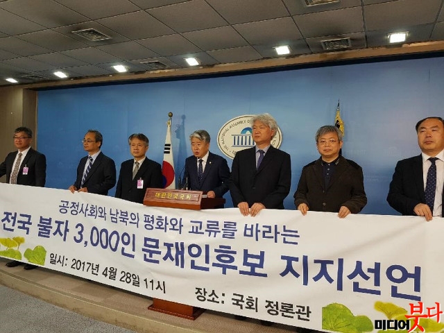 ´õºÒ¾î¹ÎÁÖ´ç Á¦ 19´ë ´ëÅë·É ¼±°Å ¹®ÀçÀÎ Èĺ¸ 108ºÒ±³ Ưº¸´Ü(°øµ¿»óÀÓ´ëÇ¥ ÃÖ¿¬¡¤ÀÌÈñ¼±)Àº 4¿ù 28ÀÏ(±Ý) ¿ÀÀü ±¹È¸ Á¤·Ð°ü¿¡¼ '°øÁ¤»çȸ¿Í ³²ºÏÀÇ ÆòÈ¿Í ±³·ù¸¦ ¹Ù¶ó´Â ºÒÀÚ 3,000ÀÎ ¹®ÀçÀÎ Èĺ¸ ÁöÁö¼±¾ð' °ü·Ã ±âÀÚȸ°ßÀ» ¿¾ú´Ù.