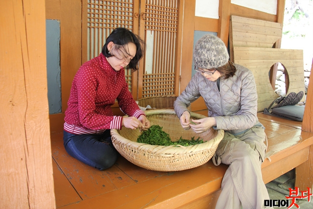 ¹Ú¼ÒÀåÀÌ À¯³äÀÌ µÈ ÂþÀÙÀ» ¼Ü ÇÑÂÊ¿¡ ¸ô¾Æ³õ°í Á¶±Ý¾¿ ÆîÄ¡±â¸¦ Çϸé Á¤¿¹¾¾´Â ÀÌ ÂþÀÙÀ» °í¸£°Ô Æñ´Ù°¡ ¸ð¾Ò´Ù°¡¸¦ ¹Ýº¹ÇÏ¸é¼ °ÇÁ¶½ÃŲ´Ù. µÎ »ç¶÷ÀÇ ¼Õ¹ßÀÌ ¾ÆÁÖ Àß ¸Â´Â´Ù. ¿©·¯ ÇØ È£ÈíÀ» ¸ÂÃç¿Ô±â ¶§¹®¿¡ °¡´ÉÇÑ ÀÏÀÌ´Ù. Àç°ÇÀº ´÷´Â µí °ÇÁ¶ÇÏ°í °ÇÁ¶ÇÏµí ´÷´Â °úÁ¤Ã³·³ º¸ÀδÙ. ¿¬³ìºûÀÇ ÂþÀÙµéÀÌ ¼¼È÷ £Àº ÁøÃÊ·ÏÀ¸·Î º¯Çϰí, ´Ù½Ã ´õ £Àº ±¹¹æ»öÀ¸·Î º¯ÇÏ¸é¼ ¸¶¹«¸® ´Ü°è °ÇÁ¶±îÁö ¼Ü ¾È¿¡¼ ÇØ°áµÈ´Ù. µÎ »ç¶÷ÀÌ ÂþÀÙÀ» ¼¯°í ±¼¸®°í Èð»Ñ¸®°í ¸ðÀ¸°í¸¦ ¹Ýº¹ÇÏ¸é¼ ¿ÏÀü°ÇÁ¶ÀÇ ¸ð¾çÀ» ¸¸µé¾î³½´Ù. ÀÌ °úÁ¤¿¡¼ Â÷ÀÇ Çâ°ú ¸ÀÀº °áÁ¤µÈ´Ù. ¼ö¸¸ ¹øÀÇ ¼Õµ¿ÀÛÀÌ ÀÀÃàµÇ¾î ¸¸µé¾îÁø Â÷°¡ ¿Ï¼ºµÇ´Â °øÁ¤ÀÌ´Ù.
