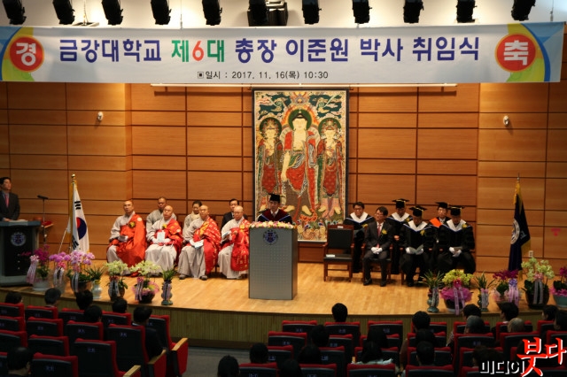 ±Ý°´ëÇб³ Á¦6´ë ÀÌÁØ¿ø ÃÑÀåÀÇ ÃëÀÓ½ÄÀÌ 11¿ù 16ÀÏ(¸ñ) ¿ÀÀü 10½Ã 30ºÐ¿¡ ¿ø°¢µµ¼°ü 1Ãþ ¼Ò°´ç¿¡¼ ¿·È´Ù(»çÁø).