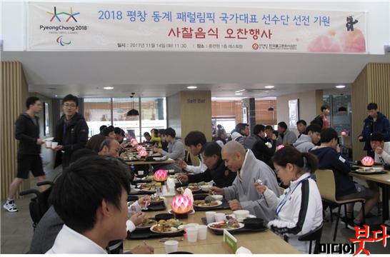 ÇÑÆí, 11¿ù 14ÀÏ(È)¿¡´Â 2018ÆòâÆÐ·²¸²ÇÈ ¼±¼ö´Ü°ú ÁöµµÀÚ µî 250¿©¸íÀ» À§ÇÑ ¿ÀÂùÇà»ç¸¦ ÁøÇàÇß´Ù. À̳¯ ¿ÀÂù¿¡´Â ºÎ»óÀÌ ÀæÀº ¼±¼öµéÀÇ °Ç°À» À§ÇÏ¿© ¿°ÁõÄ¡·á¿¡ È¿°ú°¡ ÁÁÀº ´õ´öÀ» ÀÌ¿ëÇÑ ´õ´öÀ㹫ħ‧´õ´ö±¸ÀÌ¿Í ÁýÁß·Â Çâ»ó¿¡ µµ¿òÀ» ÁÖ´Â °ß°ú·ù¸¦ ÀÌ¿ëÇÑ ¶¥Äṫħ‧ÄáºÒ°í±â‧Àâ°î¹ä, °¿øµµ ½ÄÀç·á¸¦ Ȱ¿ëÇÑ ¹ö¼¸°Á¤‧»õ¼ÛÀÌÀ徯Âî‧¿ì¾ûµé±úÅÁ µî 40¿© °¡Áö ±â·ÂÇâ»ó¿¡ µµ¿òÀÌ µÇ´Â »çÂûÀ½½ÄÀ» ¼±º¸¿© ÁÖ¸ñÀ» ¹Þ¾Ò´Ù.