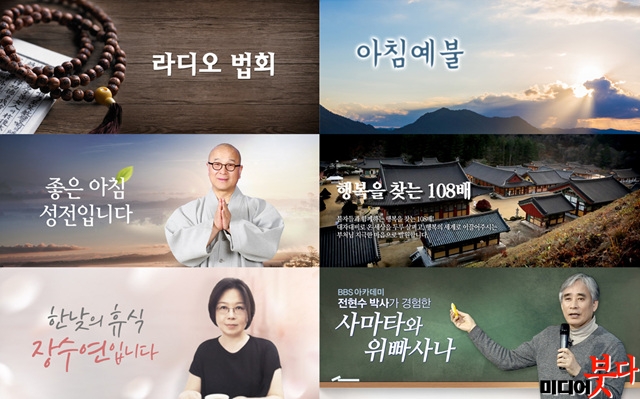 BBS-TV´Â ¡®¾ÆÄ§(Àú³á)¿¹ºÒ¡¯, ¡®ÇູÀ» ã´Â 108¹è¡¯, ¡®»ç½ÃºÒ°ø¡¯ µî ±íÀº ½Å½ÉÀ» À§ÇÑ µ¶°æ ÇÁ·Î±×·¥°ú ¡®Á¤¿ì½º´ÔÀÇ ´ç½ÅÀ» ±ú¿ì´Â ÁöÇý¹ý¹®¡¯, ¡®ÀüÇö¼ö ¹Ú»ç°¡ °æÇèÇÑ »ç¸¶Å¸¿Í À§ºü»ç³ª¡¯, ¡®¿ì½ÂÅÃÀÇ ºÎÀڿϼº ÇÁ·ÎÁ§Æ®¡¯ µî ÁöÇý¸¦ Àϱú¿öÁÖ´Â ¹ý¹® ¹× °Á ÇÁ·Î±×·¥µéÀÌ Æ¯È÷ Àα⸦ ¾ò°í ÀÖ´Ù.