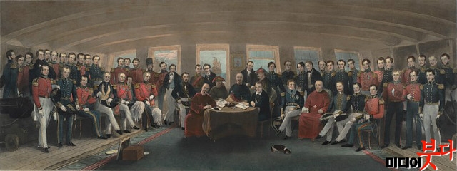 ¿©±â¼ ¾ÆÆíÀüÀïÀ̳ª ³Â¡Á¶¾àÀÇ ¿ª»çÀû ¹è°æ°ú ÀÇÀǸ¦ ³íÇÏ·Á´Â °ÍÀº ¾Æ´Ï´Ù. ±×º¸´Ù´Â ³Â¡Á¶¾àÀÌ Ã¼°áµÇ´Â ÇöÀå¿¡ Àá½Ã ÁÖ¸ñÇØ º¸°í ½Í´Ù. 1842³â 8¿ù 29ÀÏ, ¿µ±¹ ±ºÇÔ ÄÜ¿ù¸®½º(Cornwallis)È£ ¼±»ó¿¡¼ ü°áµÈ ³Â¡Á¶¾à¿¡´Â ´Ù¸¥ Á¶¾àµéó·³ ¾ç±¹ÀÇ Àü±Ç´ë»ç¿Í °ü·Ã Àλ簡 Âü¼®ÇÏ¿´´Ù. ±×·±µ¥ ÇÊÀÚÀÇ °ü½ÉÀ» ²ö °ÍÀº Á¶¾àÀÇ ÇöÀå¿¡ µîÀåÇÑ µÎ Àι°ÀÌ´Ù. ÇÑ »ç¶÷Àº ¡®Çѱ¹¿¡ ¿Â ÃÖÃÊÀÇ ¼±±³»ç¡¯·Î ºÒ¸®´Â ±ÍÃú¶óÇÁ(K.F.A. Gützlaff, 1803-1851)À̰í, ´Ù¸¥ ÇÑ »ç¶÷Àº ¡®Çѱ¹ ÃÖÃÊÀÇ »çÁ¦¡¯°¡ µÈ ±è´ë°Ç(1821-1846)ÀÌ´Ù. ±ÍÃú¶óÇÁ´Â ¿µ±¹ Ãø Å뿪°üÀ¸·Î Âü¿©ÇÏ¿´°í ±è´ë°ÇÀº ÇÁ¶û½º ±Øµ¿ÇÔ´ë ÇÔÀåÀÇ Å뿪°üÀ¸·Î Âü¿©ÇÏ¿´´Ù. ¹°·Ð ³Â¡Á¶¾àÀÇ ´ç»çÀÚ´Â ¿µ±¹°ú û³ª¶ó¿´±â ¶§¹®¿¡ ±ÍÃú¶óÇÁ´Â ȸ´ã¿¡¼ ÀÏÁ¤ÇÑ ¿ªÇÒÀ» ¼öÇàÇÑ ¹Ý¸é, ±è´ë°ÇÀº Á¦3ÀÚÀÎ ÇÁ¶û½º ÃøÀÇ ÇÑ ¼öÇà¿øÀ¸·Î Âü°üÇÏ¿´À» »ÓÀÌ´Ù. ´ç½Ã ȸ´ã Àå¸éÀ» ¹¦»çÇÑ ±×¸²ÀÌ ³²¾Æ Àִµ¥ ±ÍÃú¶óÇÁ´Â µîÀåÇÏ´Â ¹Ý¸é ±è´ë°ÇÀº µîÀåÇÏÁö ¾Ê´Â´Ù. ÀÌ Á¶¾à¿¡¼ µÎ »ç¶÷ÀÌ Â÷ÁöÇÏ´Â À§»óÀÇ Â÷ÀÌ´Ù.
