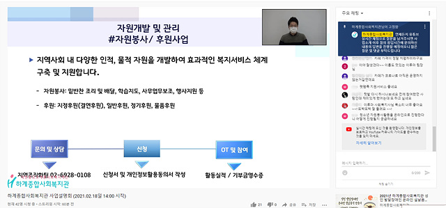 ÇϰèÁ¾ÇÕ»çȸº¹Áö°ü, 2021³â ¿Â¶óÀÎ ½Ç½Ã°£ »ç¾÷¼³¸íȸ ÁøÇà»çÁø(»çÁø. ÇϰèÁ¾ÇÕ»çȸº¹Áö°ü)