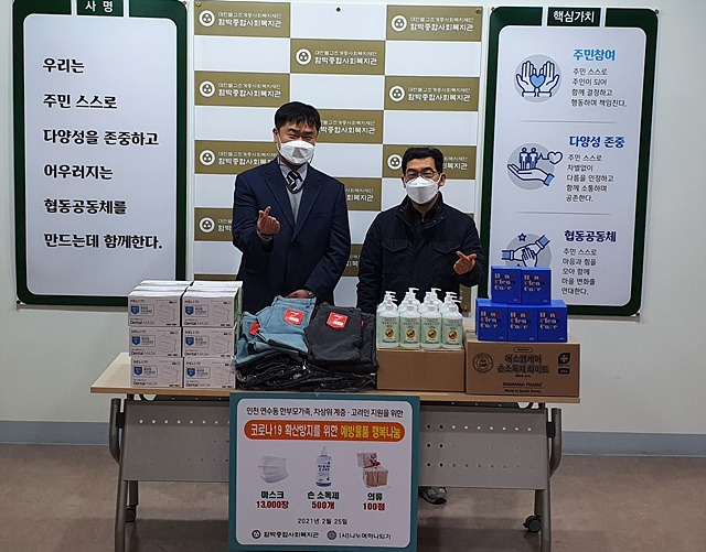 õÅÂÁ¾ »êÇÏ ¡®³ª´©¸çÇϳªµÇ±â(ÀÌ»çÀå µµ¿õ½º´Ô, õÅÂÁ¾ »çȸºÎÀå)¡¯°¡ ±¤º¹È¸ ¡¤ ÇÔ¹ÚÁ¾ÇÕ»çȸº¹Áö°ü ¡¤ ·¯ºí¸® ÆäÀÌÆä ¡¤ ö»êÁ¾ÇÕ»çȸº¹Áö°ü ¡¤ ¹«¼ÒÀ¯ ½Çõ´ÜÀ» ´ë»óÀ¸·Î 2¿ù 25ÀÏ Äڷγª19 ¿¹¹æ¹°Ç°ÀÎ µ§Å» ¸¶½ºÅ©, ¼Õ ¼Òµ¶Á¦, °í±Þ ¹°Æ¼½´ µîÀ» Àü´ÞÇß´Ù.