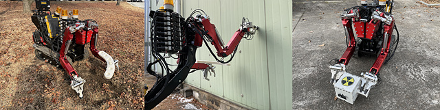 KINAC ¿¬±¸ÆÀÀÌ °³¹ß ÁßÀÎ ·Îº¿. Åä¾ç¿¡¼ ½Ã·á¸¦ äÃëÇϰí(¿ÞÂÊ), º®¸éÀ» ´Û¾Æ³»(½º¿ÍÀÌÇÁ) ½Ã·á¸¦ äÃëÇϰųª(°¡¿îµ¥), ¹°Ã¼Çü ½Ã·á¸¦ äÃëÇØ ¿î¹ÝÇÒ ¼ö ÀÖ´Ù(¿À¸¥ÂÊ). (Ãâó: KINAC)