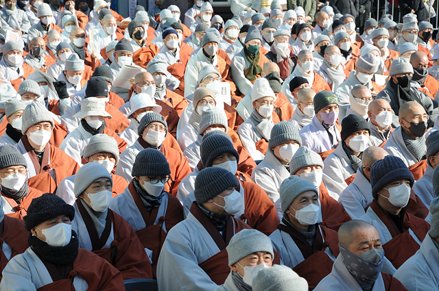 ¿À´Ã ¡ºÁ¾±³ÆíÇâ ¡¤ ºÒ±³¿Ö°î ±ÙÀý°ú Çѱ¹ºÒ±³ ÀÚÁÖ±Ç ¼öÈ£¸¦ À§ÇÑ Àü±¹½Â·Á´ëȸ¡»¿¡´Â Á¶°èÁ¾ Ãѹ«¿øÀå ¿øÇà ½º´ÔÀ» ºñ·ÔÇÑ Á¾´Ü ´ëÇ¥, Àü±¹ ±³±¸º»¸»»ç ÁÖÁö ¹× ¼±¿ø¿¡¼ µ¿¾È°Å Á¤Áø ÁßÀÌ´ø ¼öÁÂ, »çÂû½Â°¡´ëÇÐÀ» ºñ·ÔÇÑ ÇÐÀνº´Ôµé, Çѱ¹ºÒ±³Á¾´ÜÇùÀÇȸ ¼Ò¼Ó 30°³ Á¾´Ü ´ëÇ¥ ½º´Ô µî Àü±¹¿¡¼ »ó°æÇÑ 4000¿© ¸íÀÇ ½º´Ôµé°ú ´ëÁßµéÀÌ µ¿ÂüÇß´Ù.